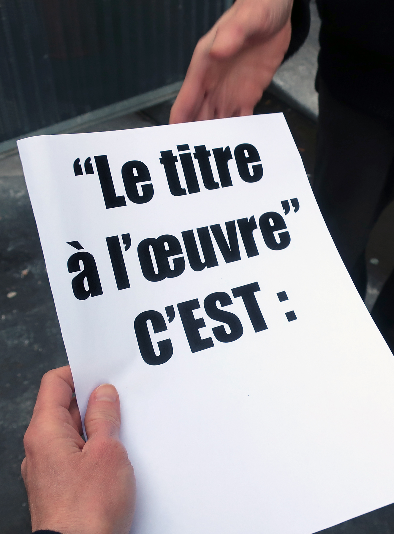 L’austérité de la proposition ainsi que sa radicalité formelle peuvent être lues comme une prise de distance avec les usages de l’exposition. Son opacité. Son auto-référentialité. Sa tautologie. Sa fermeture. Son autosuffisance. Son inaccessibilité. Ce message « mordant » (l’artiste prend-il ici le rôle du chien qui alerte le Fou ?) et second degré, est enveloppé d’un humour « pince-sans-rire », d’une « robe » formelle sérieuse.